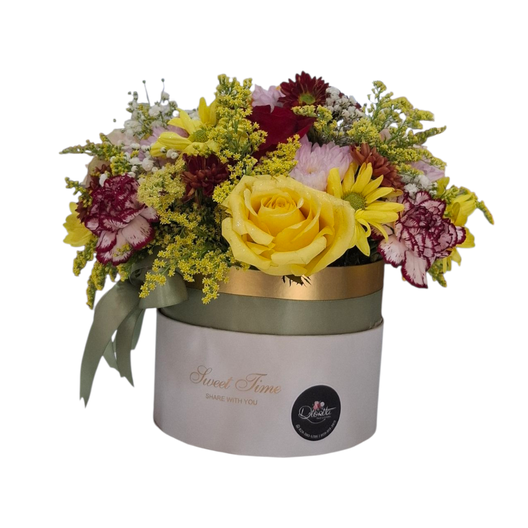 01 Relleno de: Margaritas, Claveles, Pompones, Solidago y Baby breath