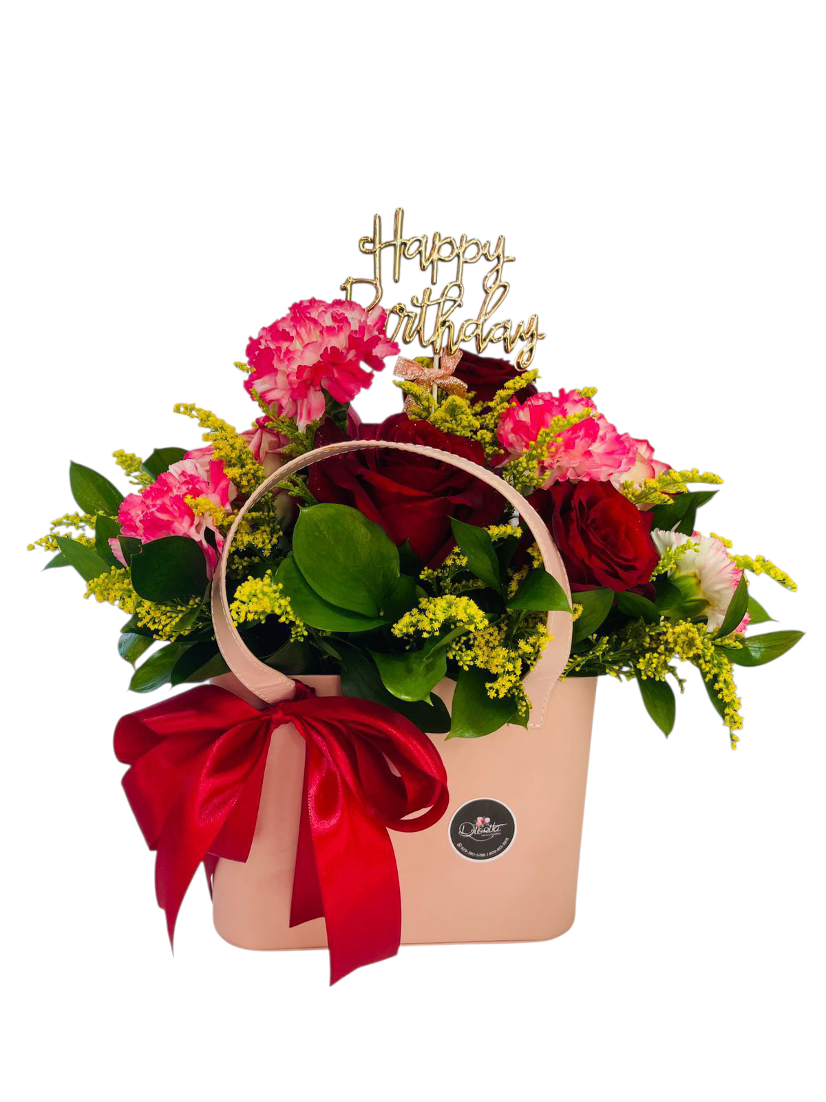 ¡Los cumpleaños son mejores con flores! Este arreglo en cartera lleva mucho amor