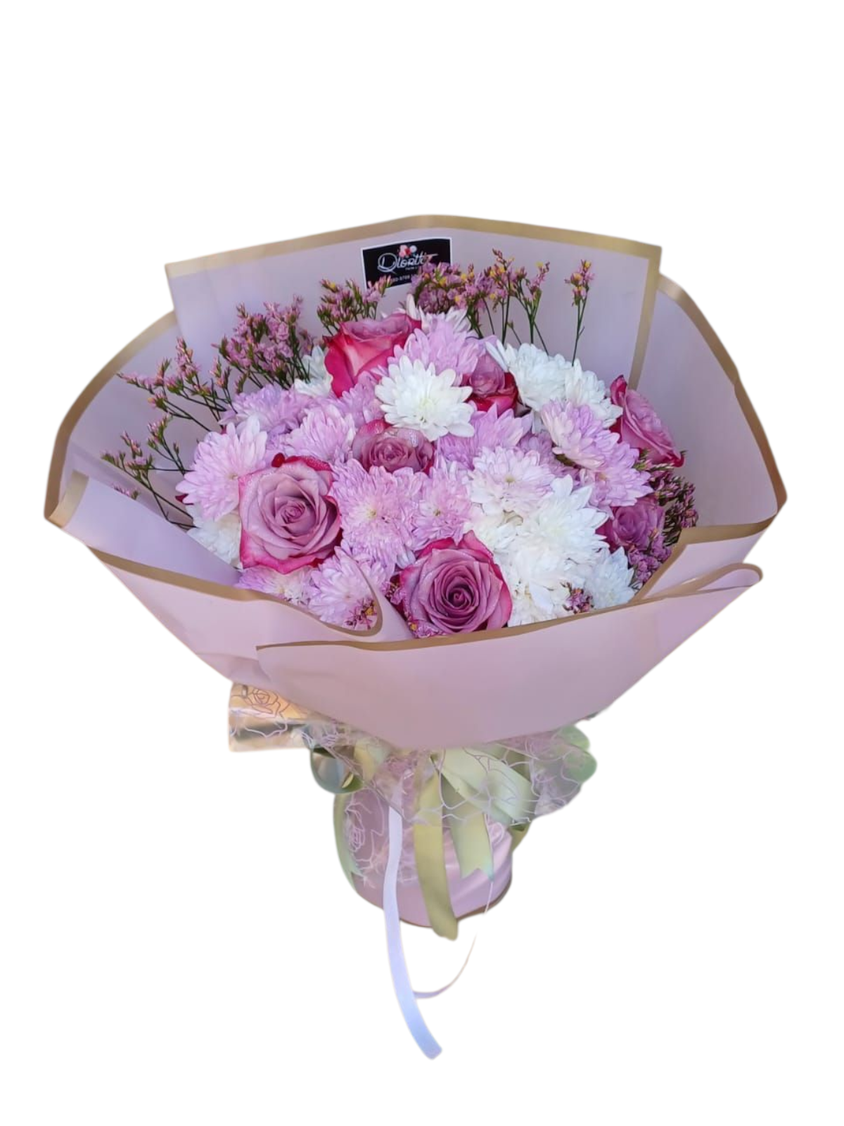 Melodía Rosa es la combinación perfecta de rosas y pompones que ilumina cualquier momento especial.