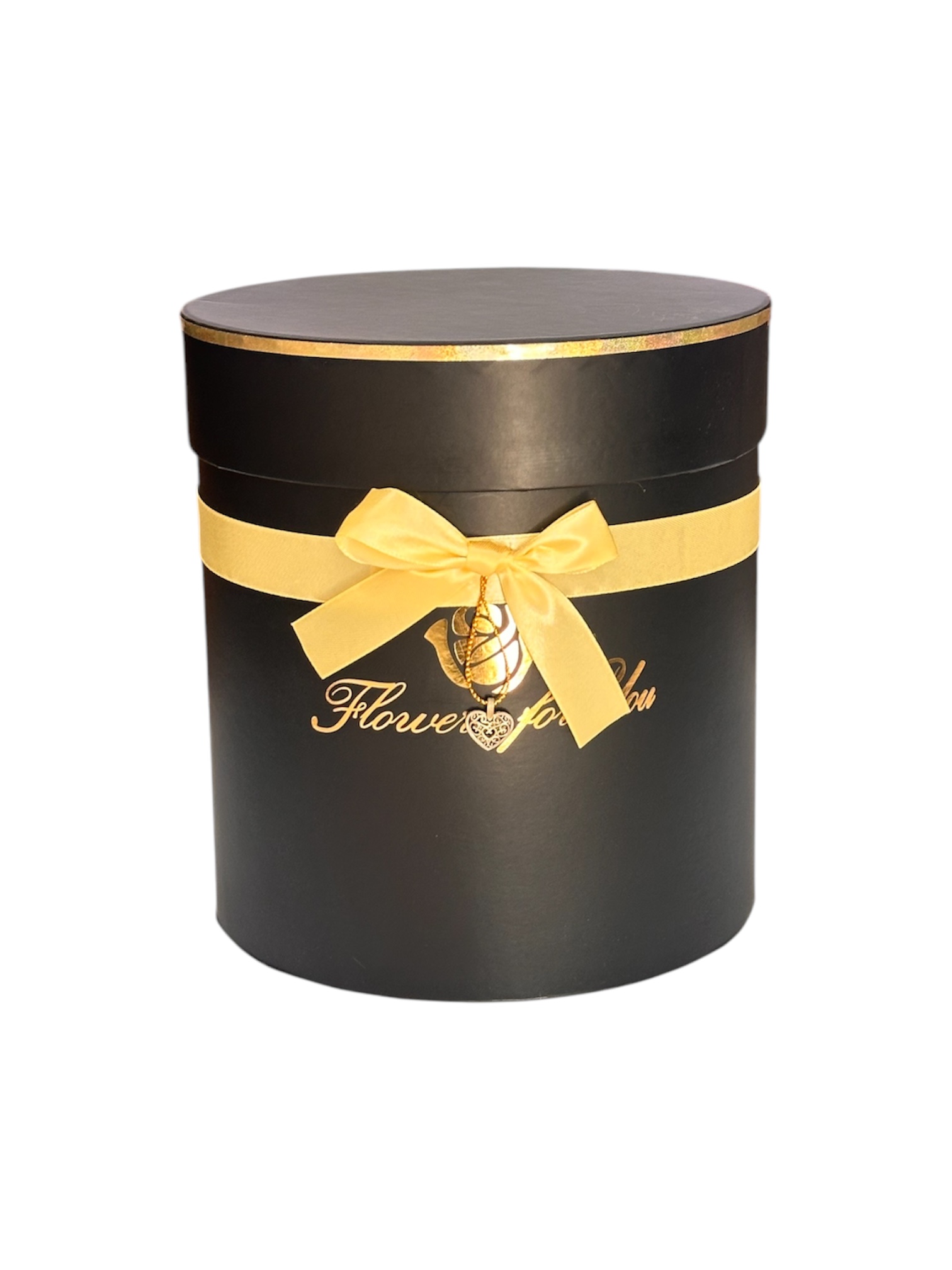 Caja Circular Alta «Flowers for you» con Lazo y Corazón Colgante
