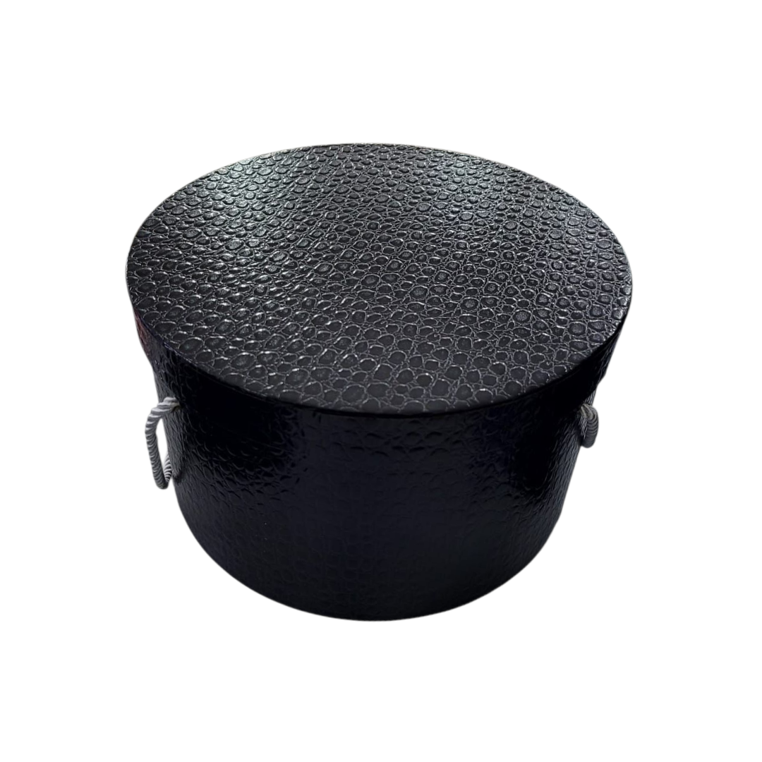 Caja Redonda Con Tapa Con Lazo Negro