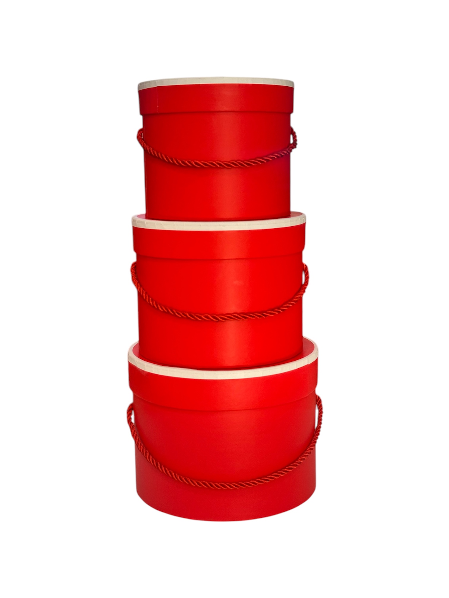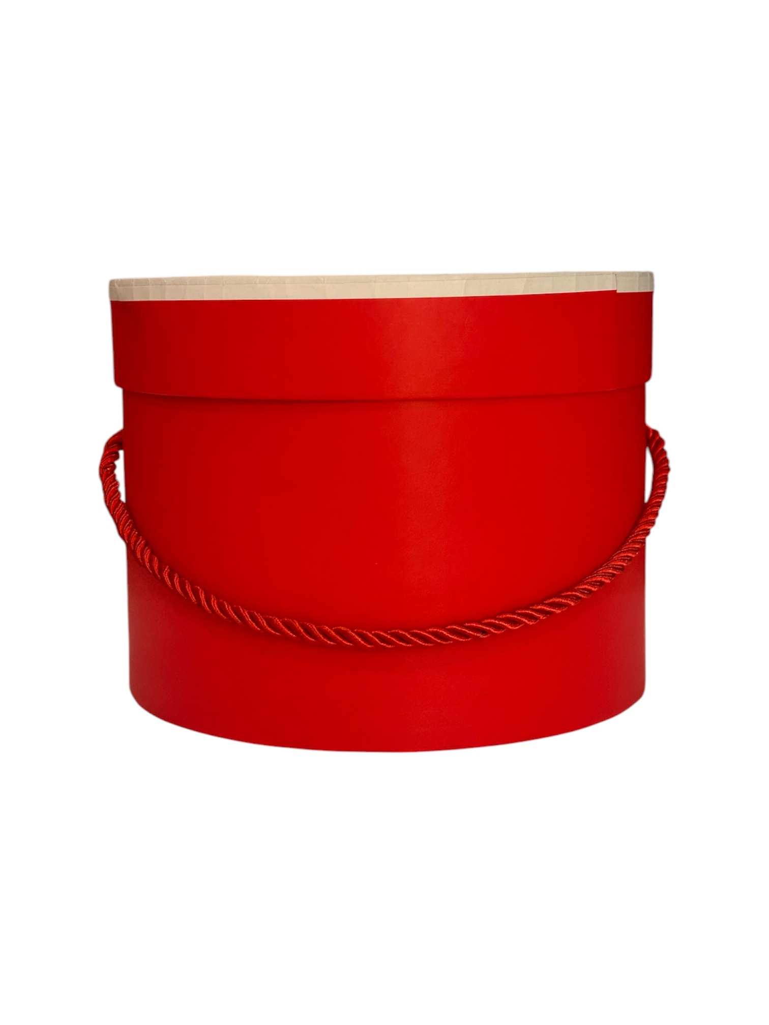 Caja Circular Rojo Viejo con Borde y Agarradera Marrones