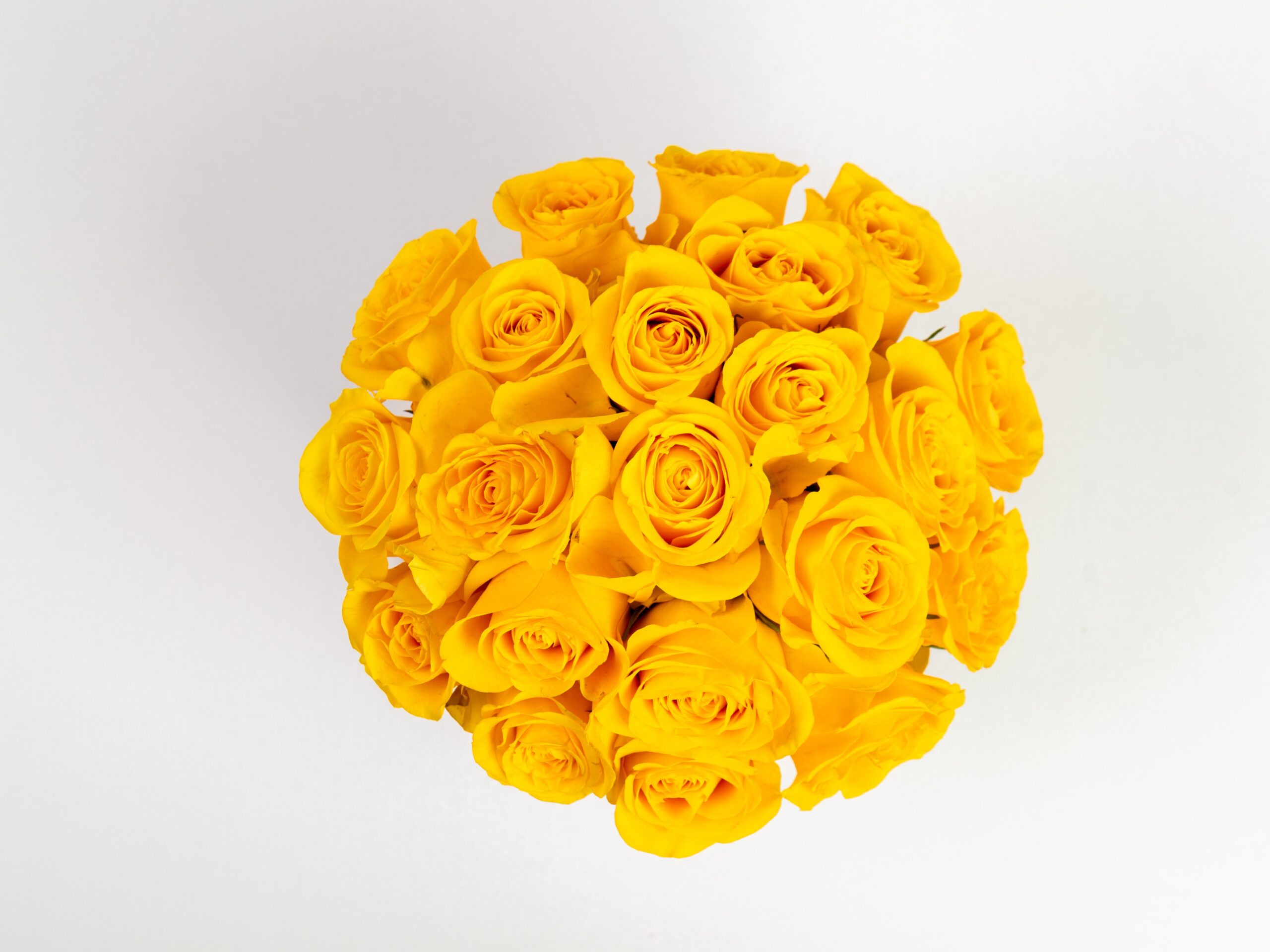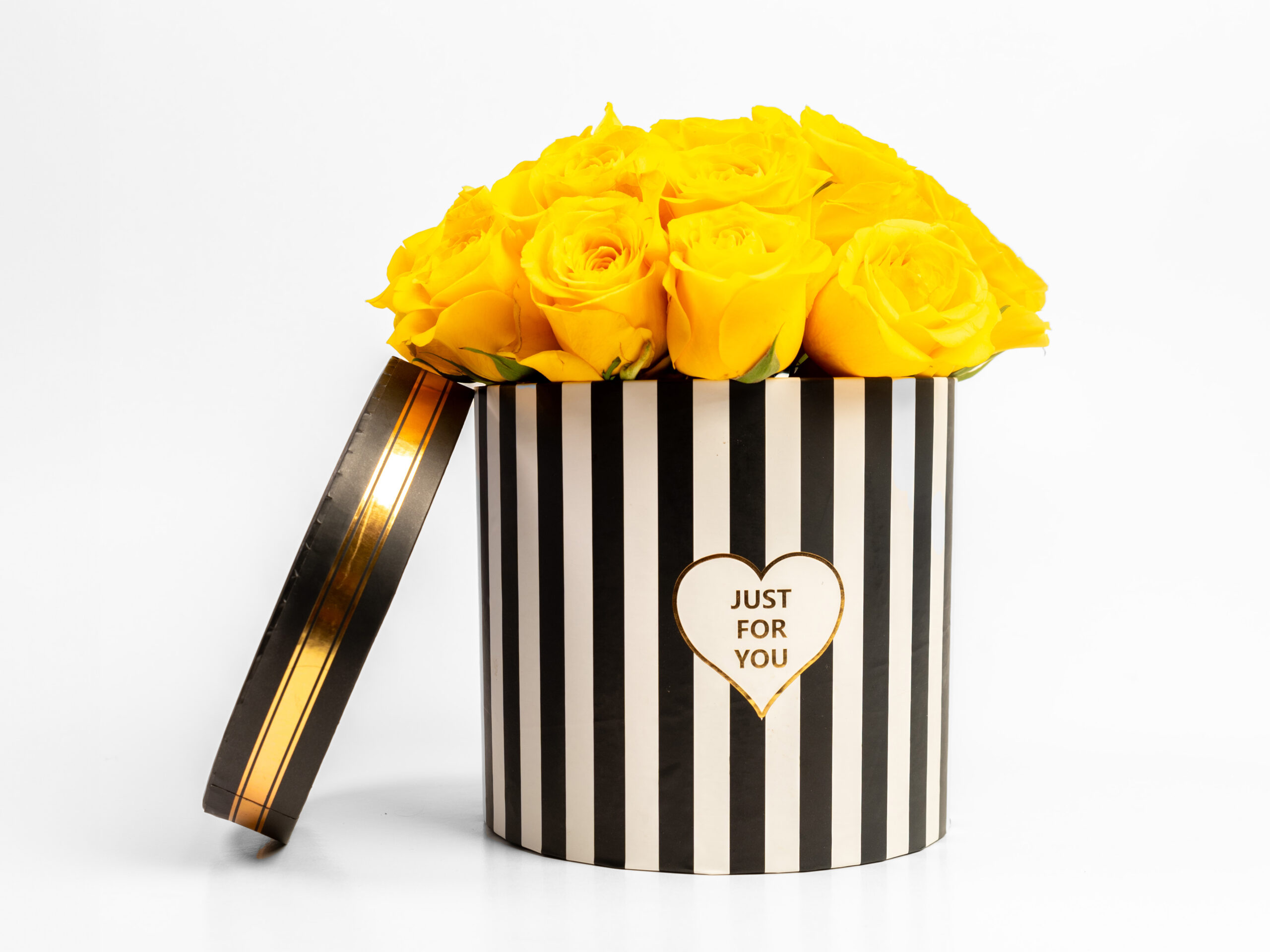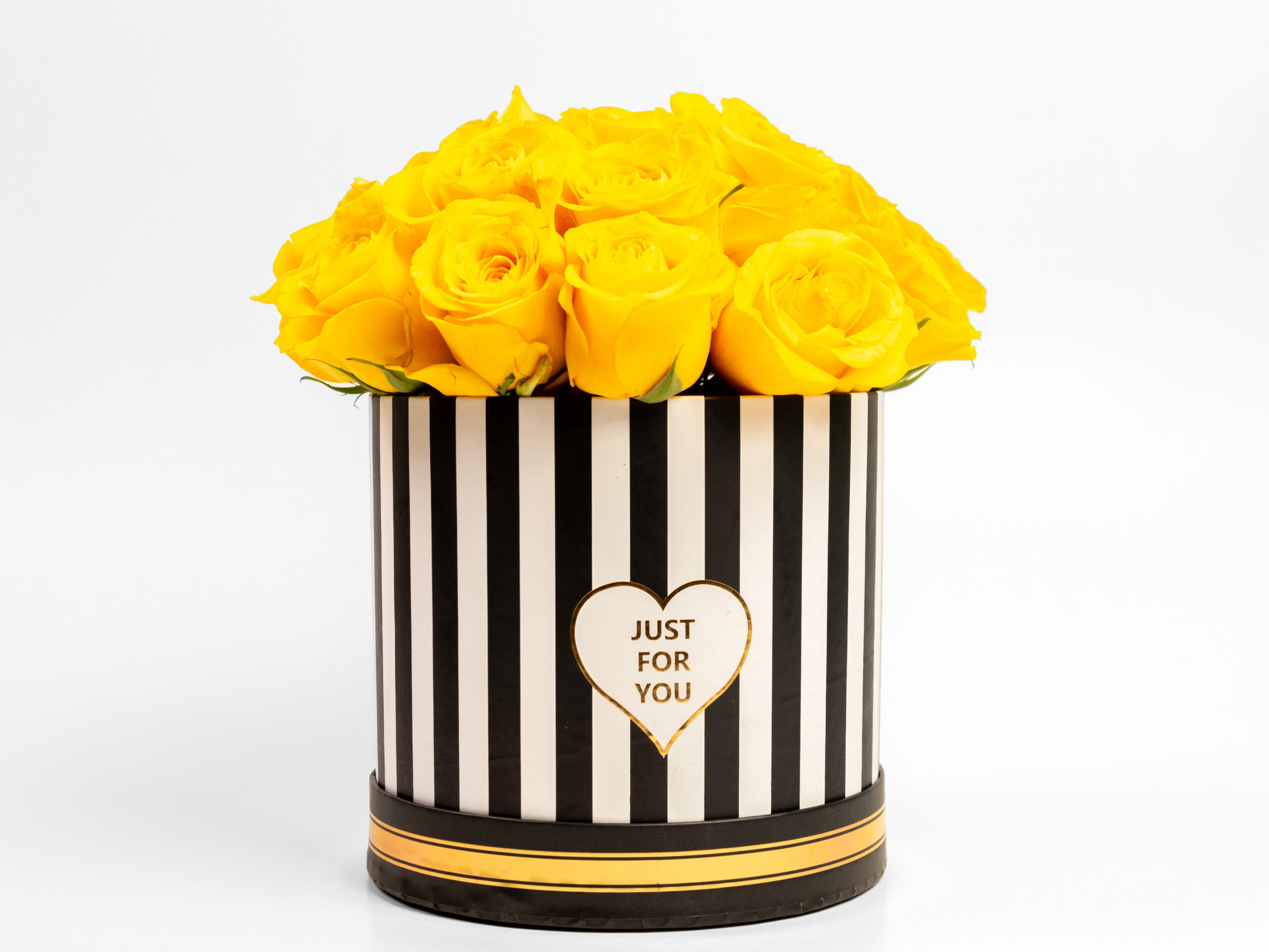 Caja circular surtida de 21 rosas amarillas. Lazo opcional y sin costo adicional.