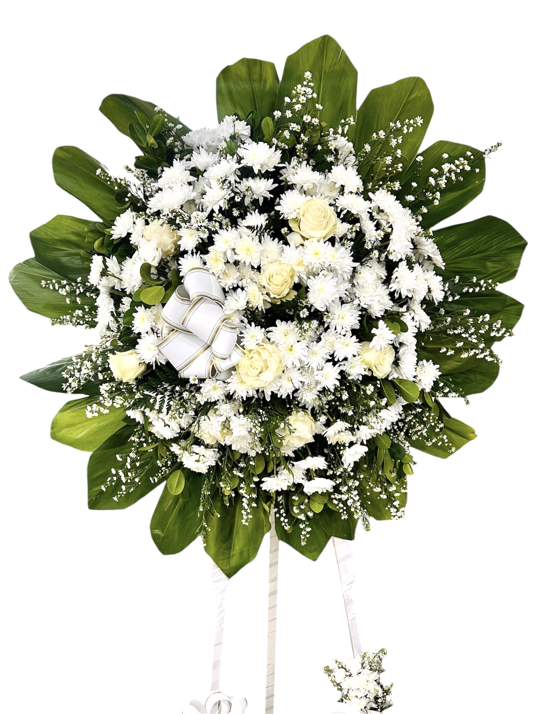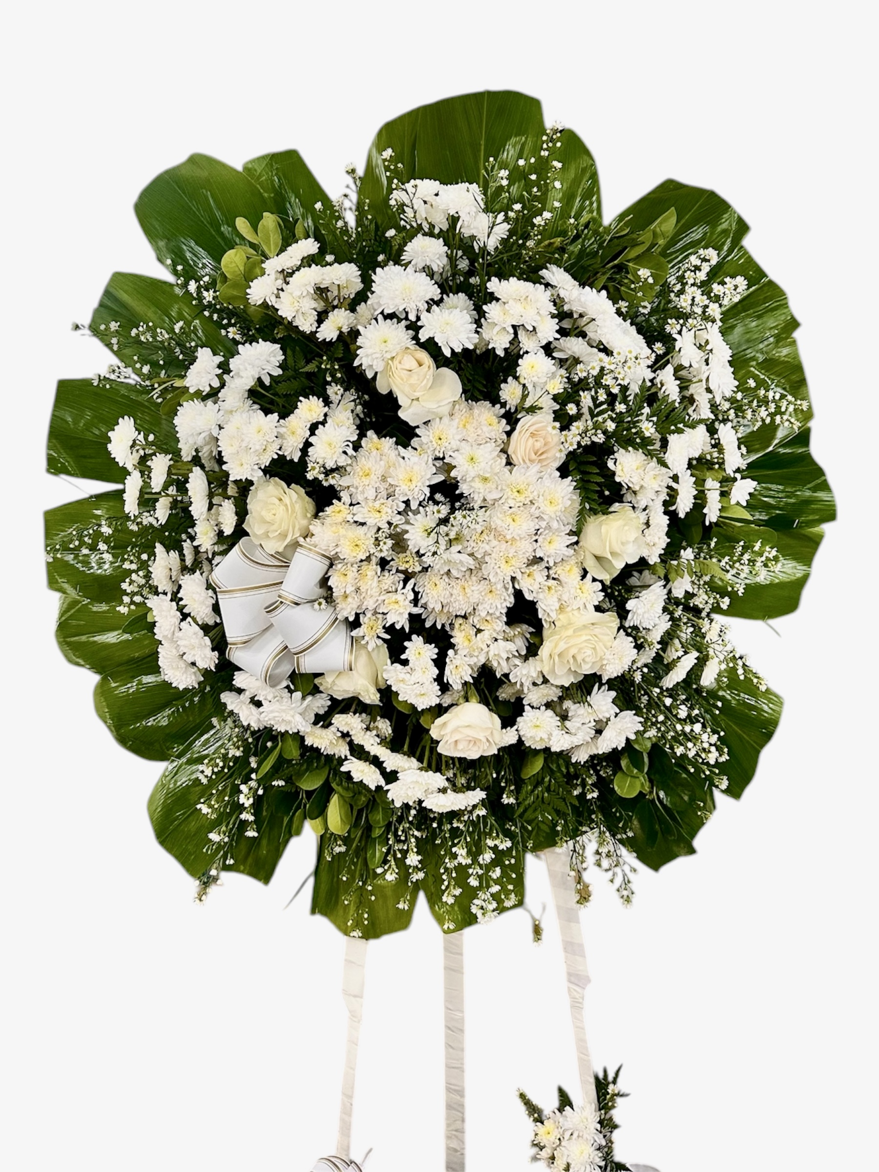 Corona Funebre con Hortensias, Rosas, Margaritas, Baby Breath y Anthurium 5667