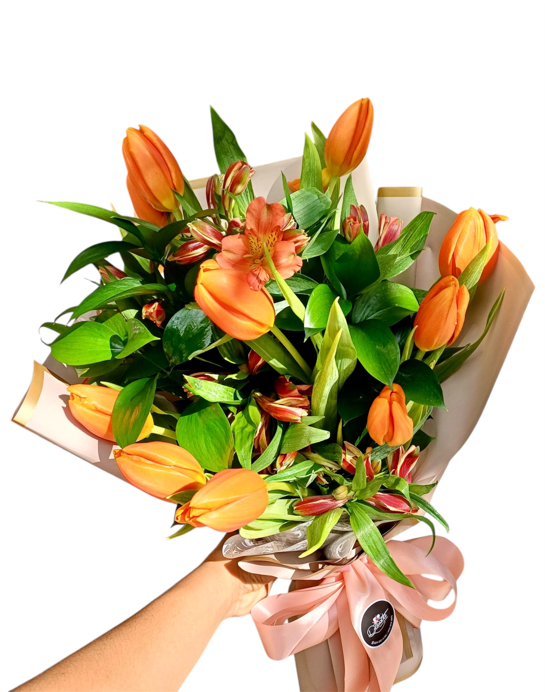 Ruscu, 10 tulipanes, astromelias