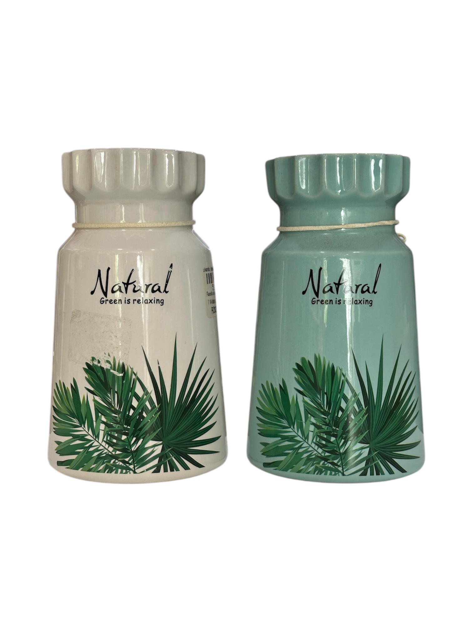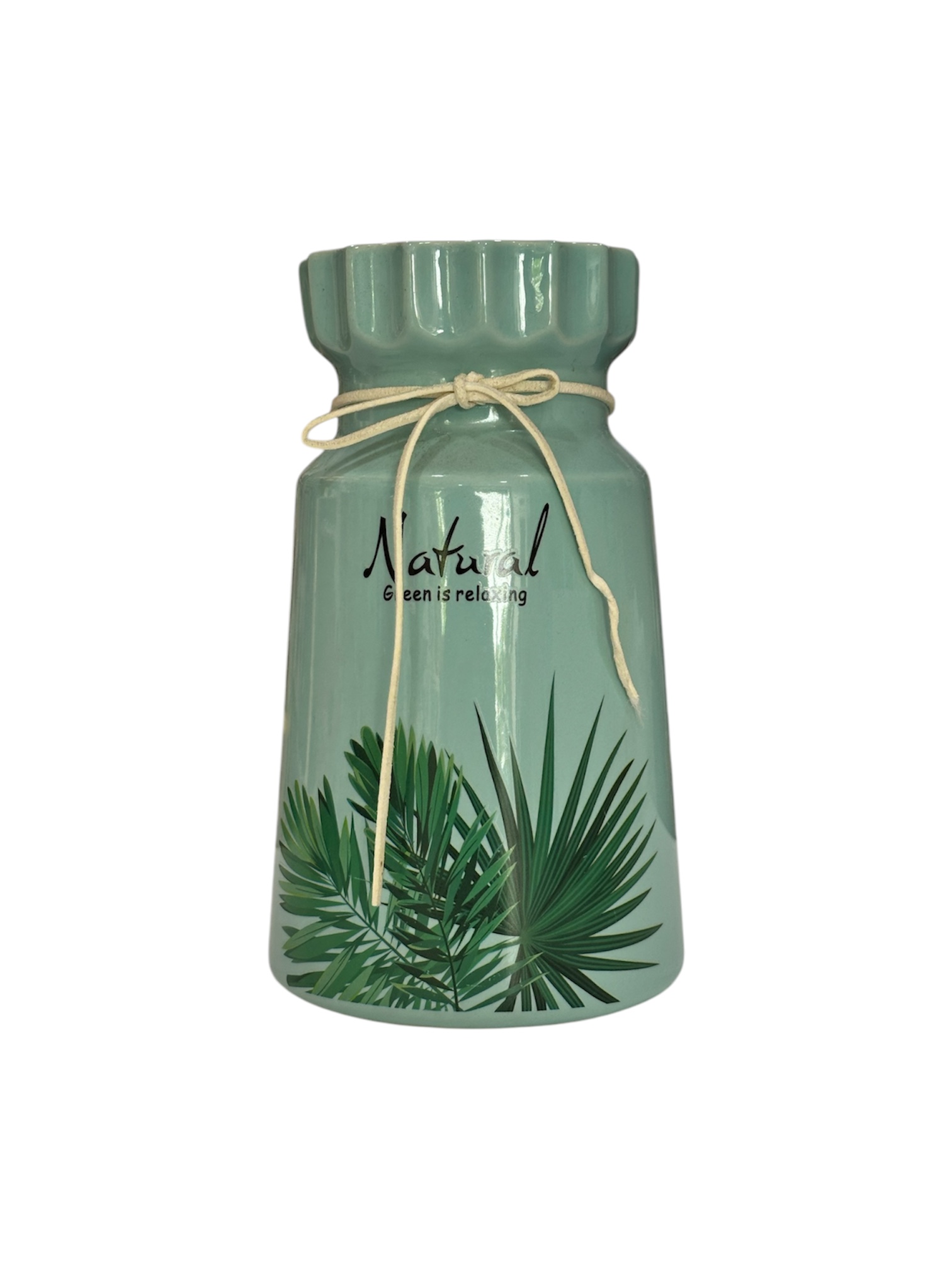 Florero en porcelana forma curva con rayas Verde/Rosado