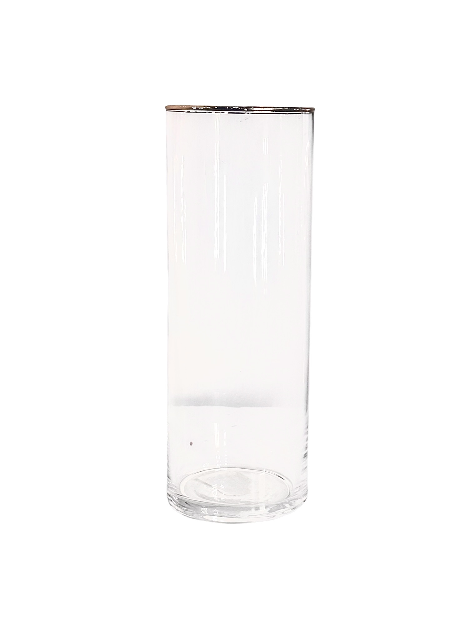 Florero de Cristal forma cilindro con borde dorado, 10 x 4 pulgadas