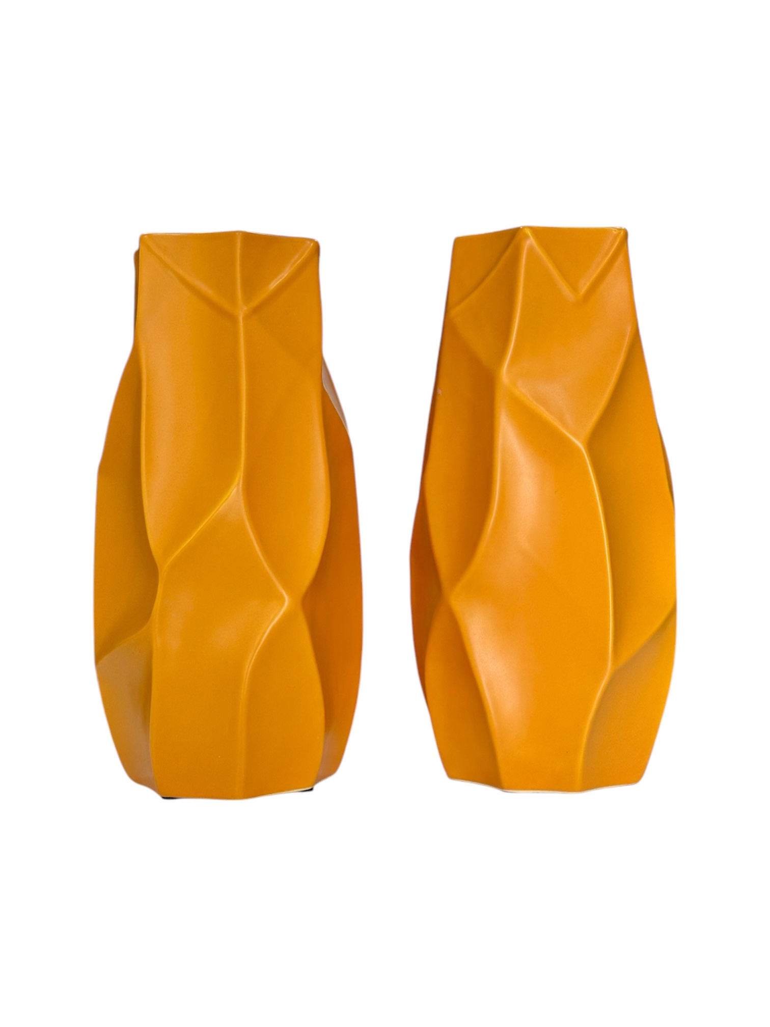 Florero en porcelana amarilla, 12 x 4 pulgadas