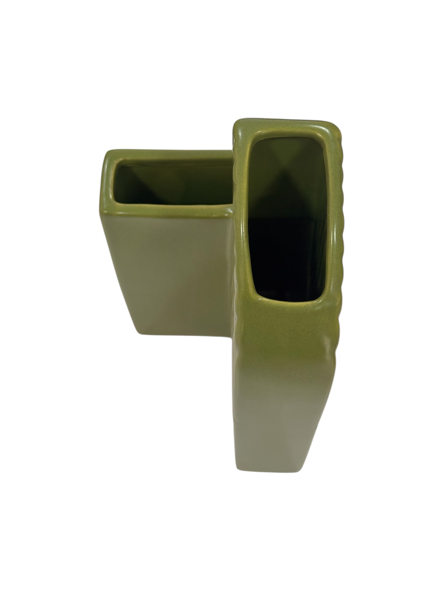 Florero en porcelana blanco/verde doble hueco R9.5×4.5 pulgadas