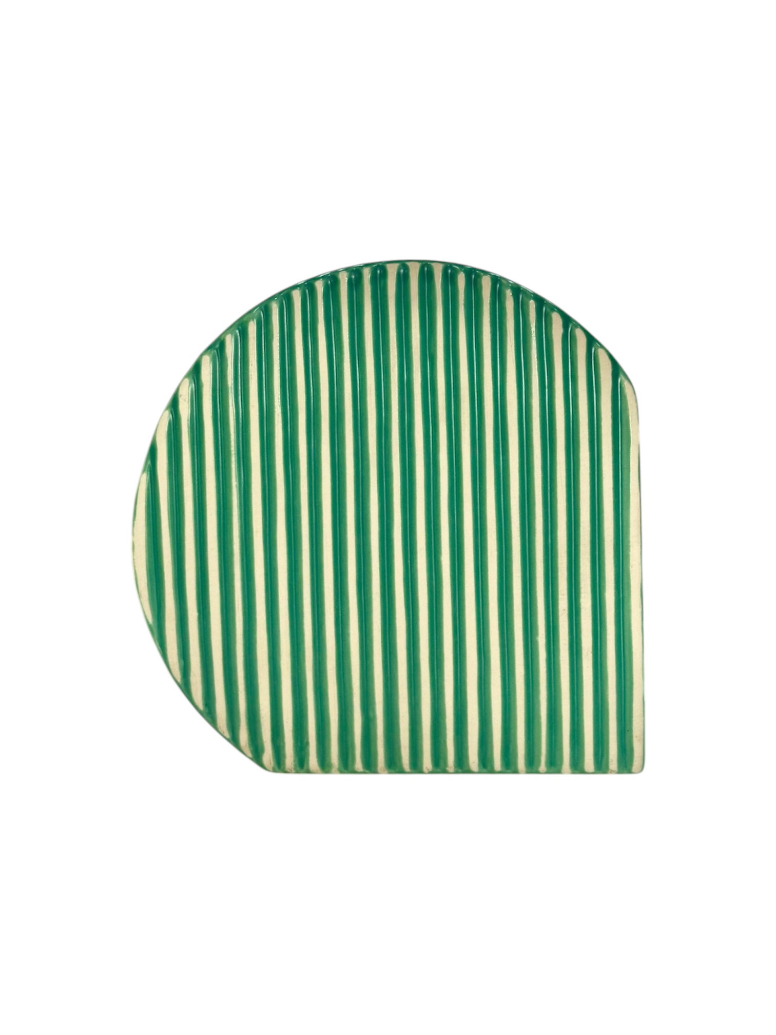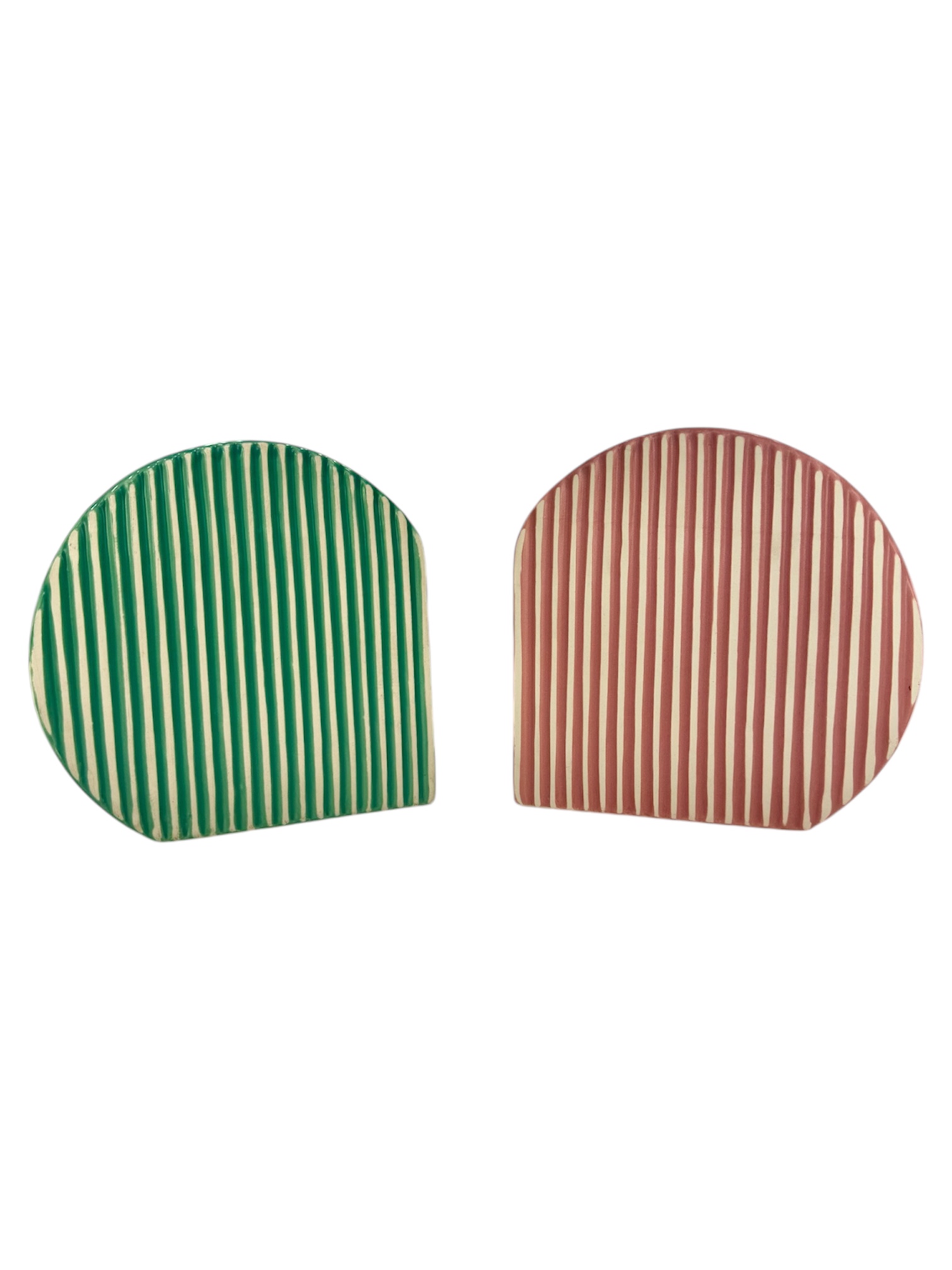 Florero en porcelana forma curva con rayas Verde/Rosado, 6 x 6 pulgadas