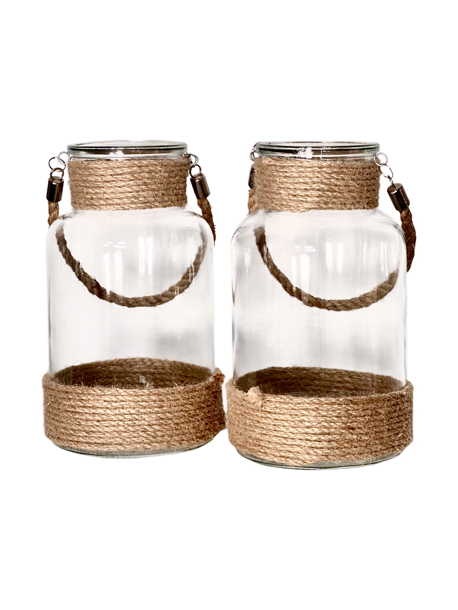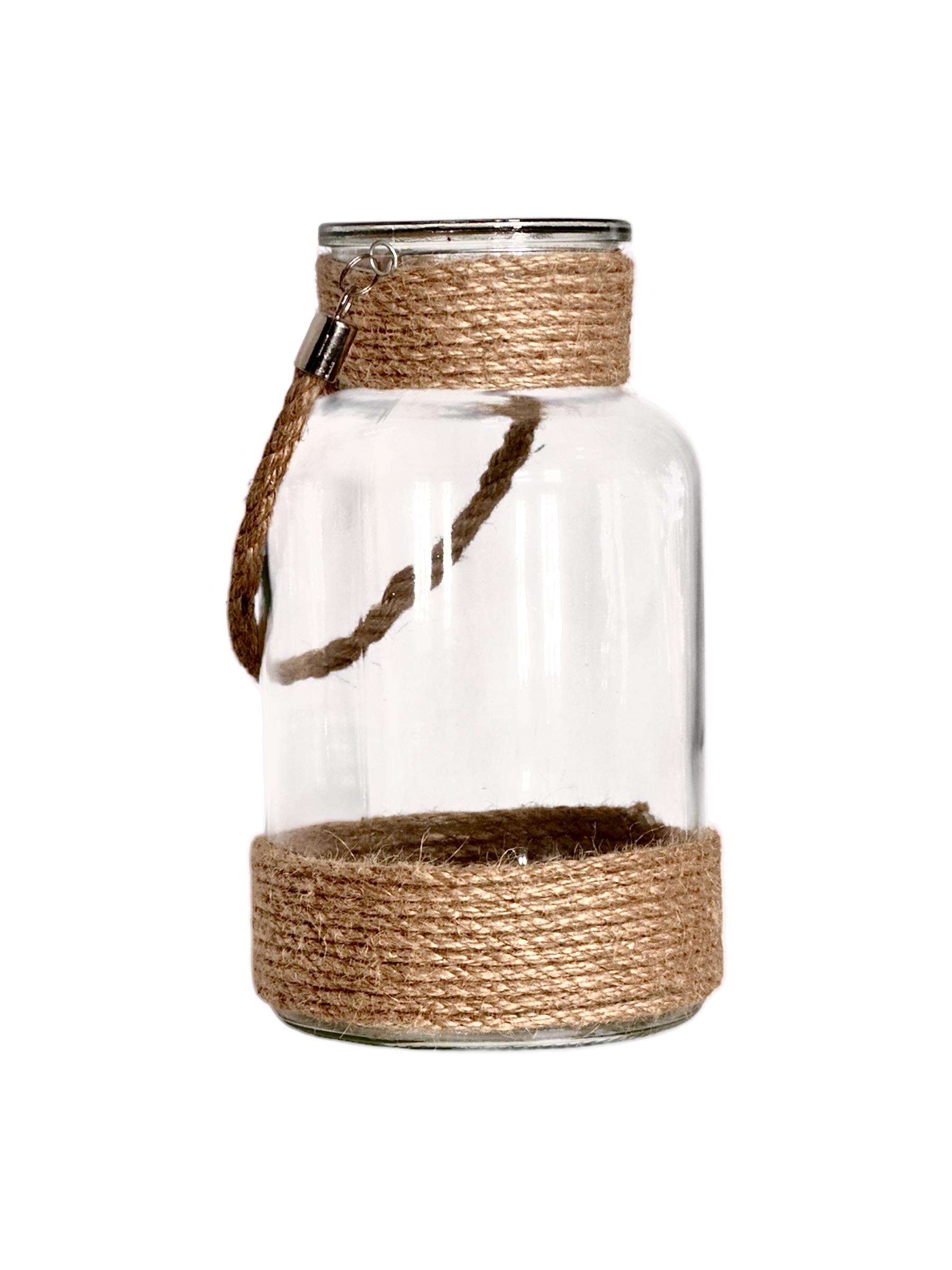 Florero Porta Vela con detalles en soga, 10 x 6 pulgadas