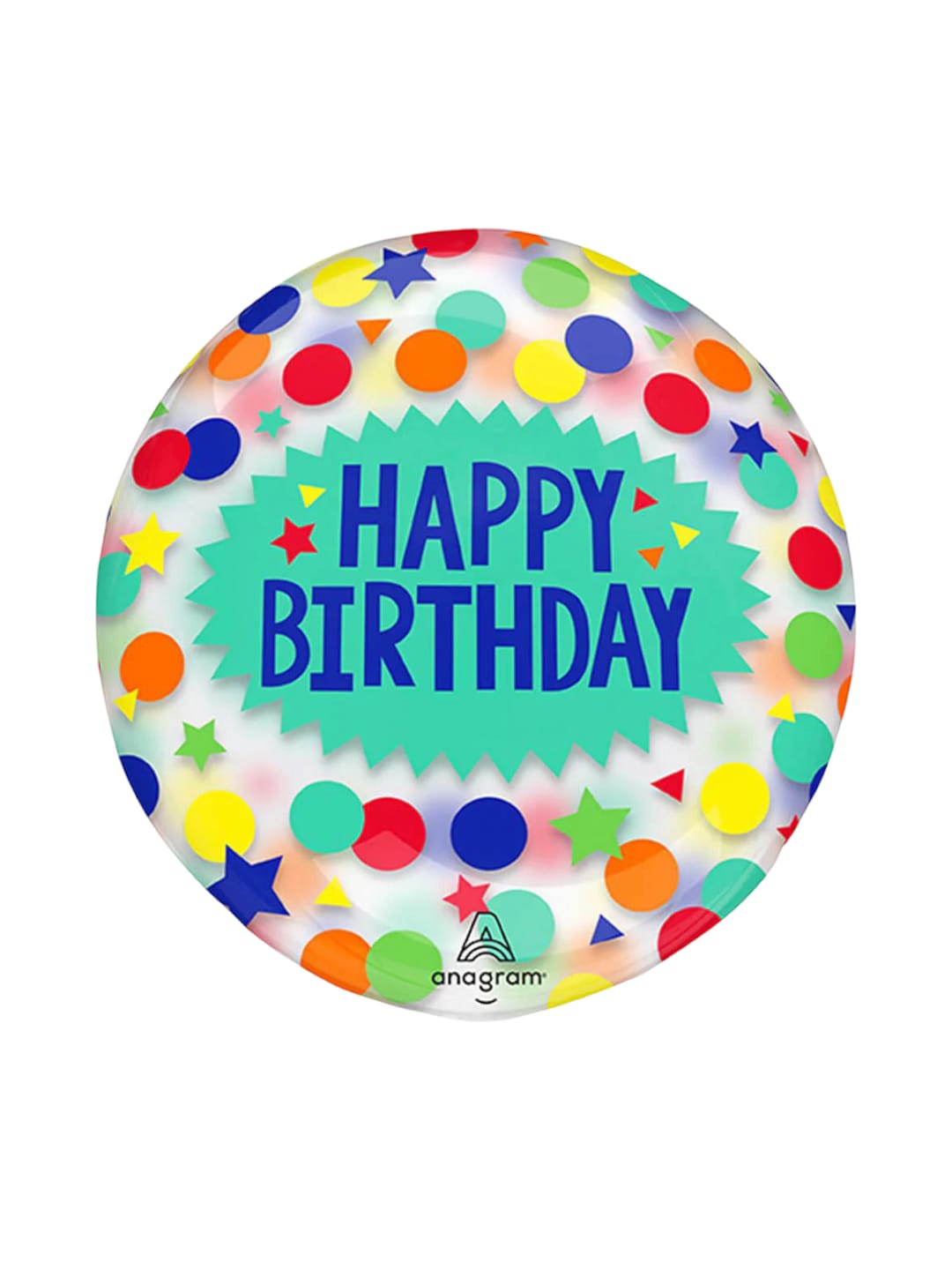 Globo clearz Happy Birthday bolas y estrellas 18 pulgadas