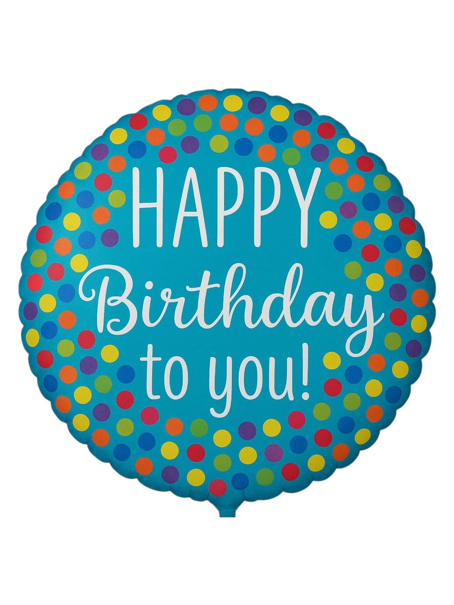 Globo metalico Happy Birthday to you azul con lunares colores, 17 pulgadas