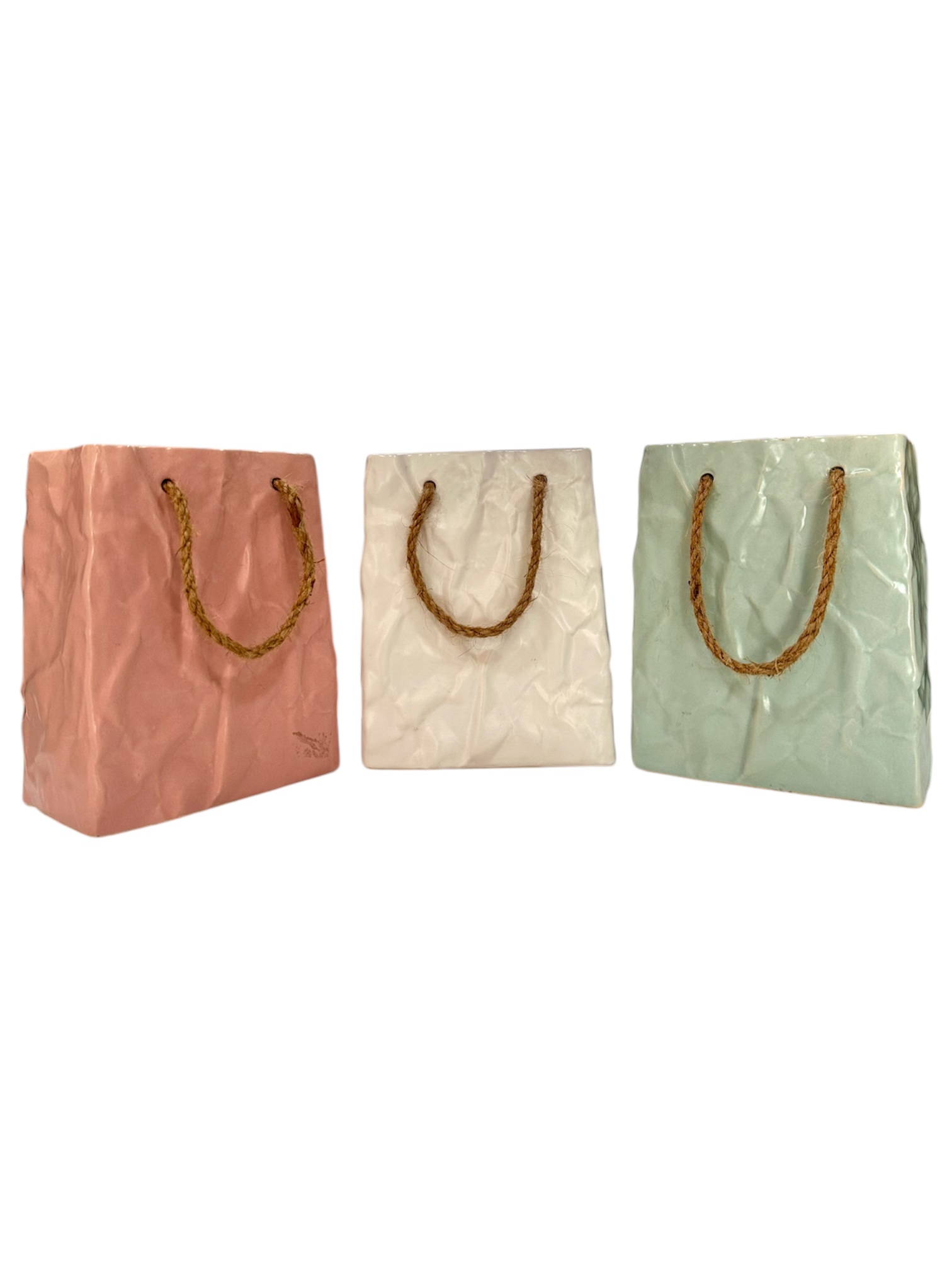 Macetero pequeño en porcelana blanco/rosado/azul claro, 6.25×2.5×4.5 pulgadas