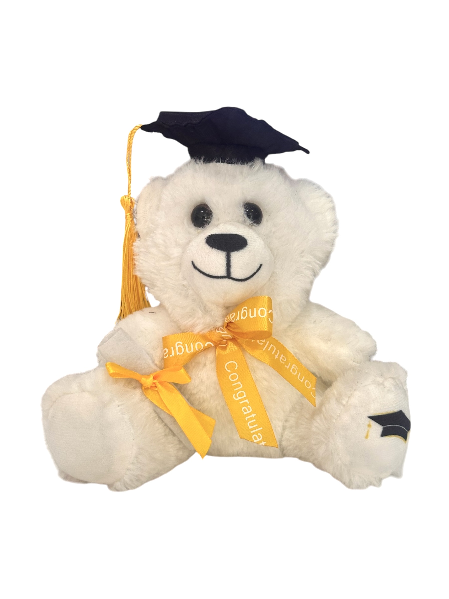 Osito de graduación color blanco con dorado. 7 pulgadas