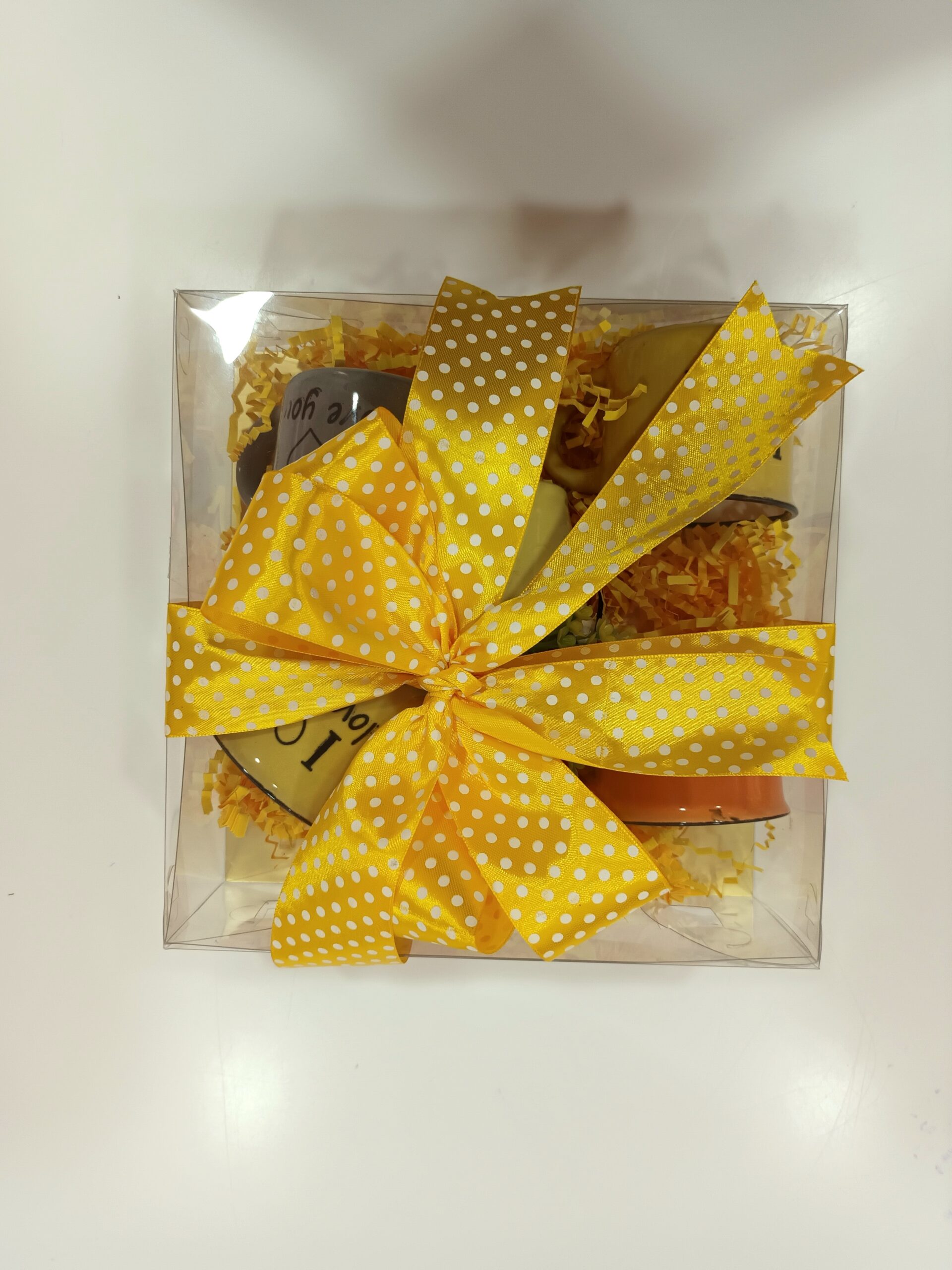 04 tacitas I Love You, 01 florerito, 01 caja clear, 01 envoltura lazo elegante