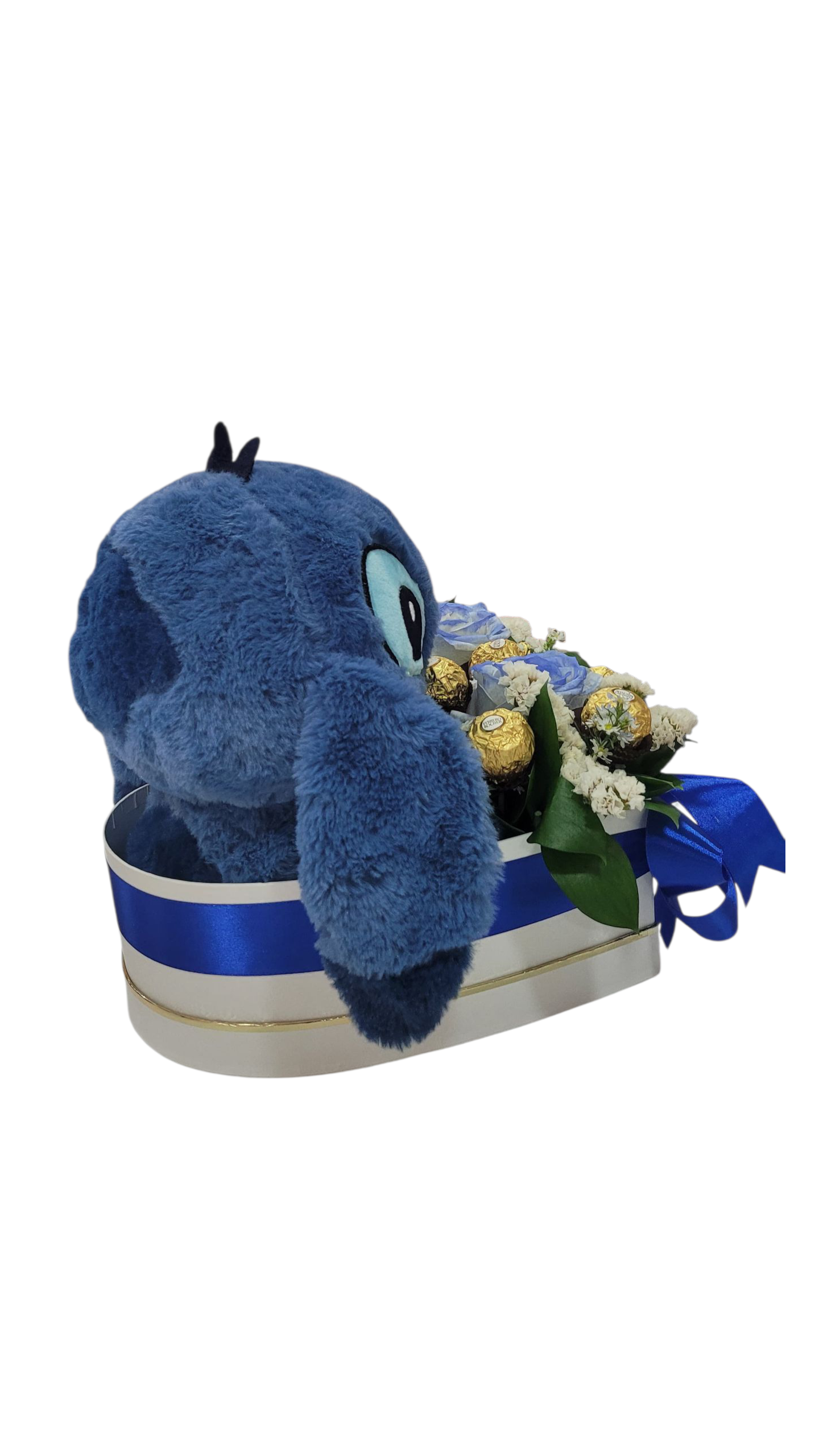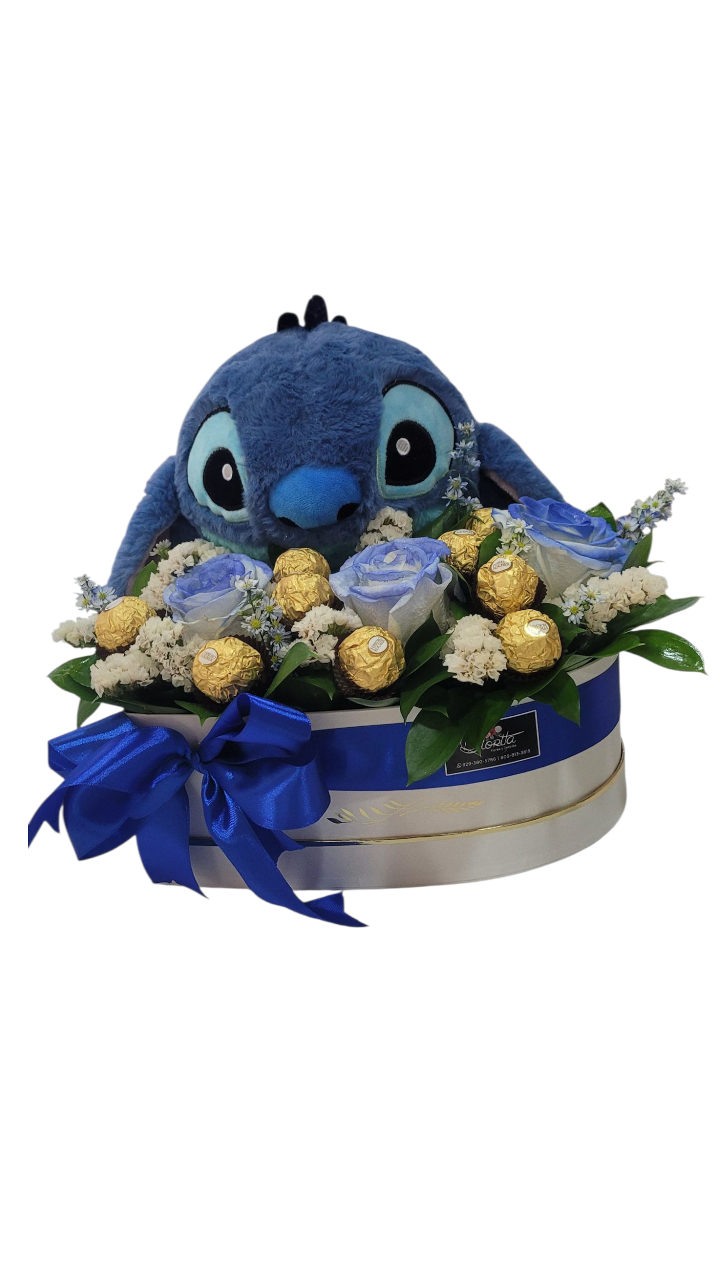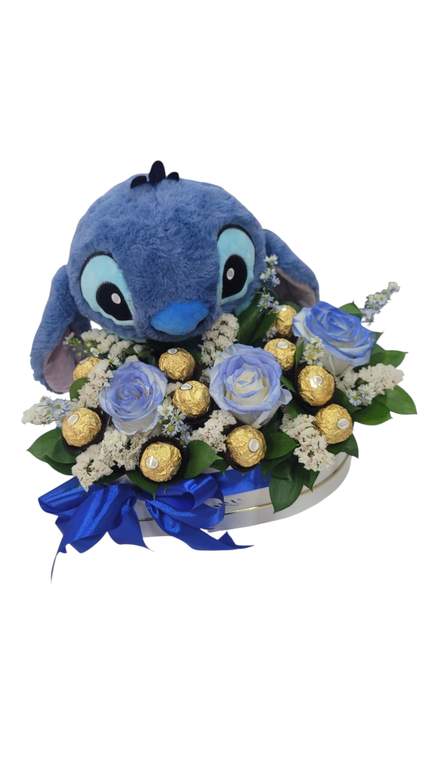 Stitch vino con flores, bombones y mucho amor.