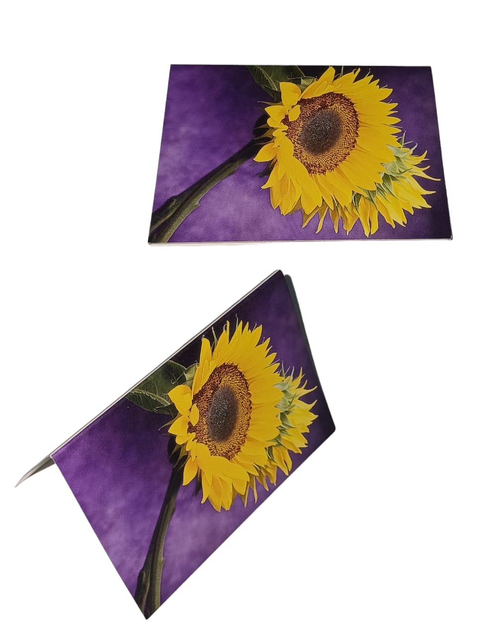 Tarjeta dedicatoria de doble hoja, abierta tiene una medida de 2×5 pulgadas, y cerrada 2×3.5 pulgadas.